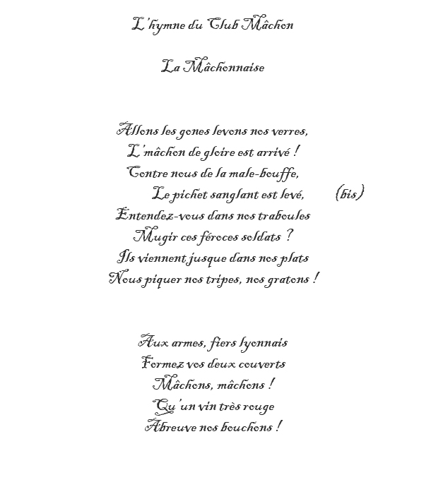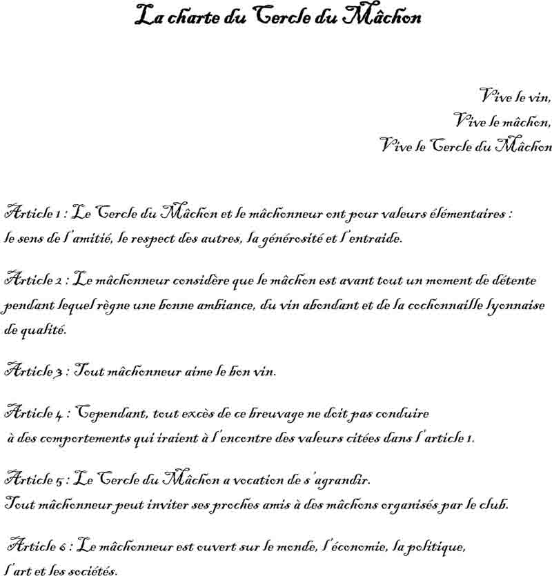 • Les membres du Cercle du Mâchon se réunissent régulièrement afin de mâchonner (prendre un repas).